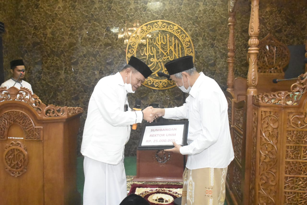 Tak lupa Rektor UNM juga menyumbangkan sejumlah uang kepada pengurus Masjid Nurul Ilmi sebagai rangkaian dari safari Ramadhan Rektor UNM dan jajarannya. (*)