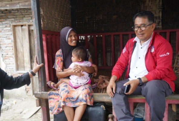 MAJENE, KACE — PJ Gubernur Sulbar Akmal Malik bersam Kepala BKKBn Sulbar Nuryamin menyempatkan berkunjung dan menyalurkan bantuan kepada sejumlah keluarga berisiko stunting saat perjalanan dari Majene ke Mamuju, Rabu , 10 Mei 2023.