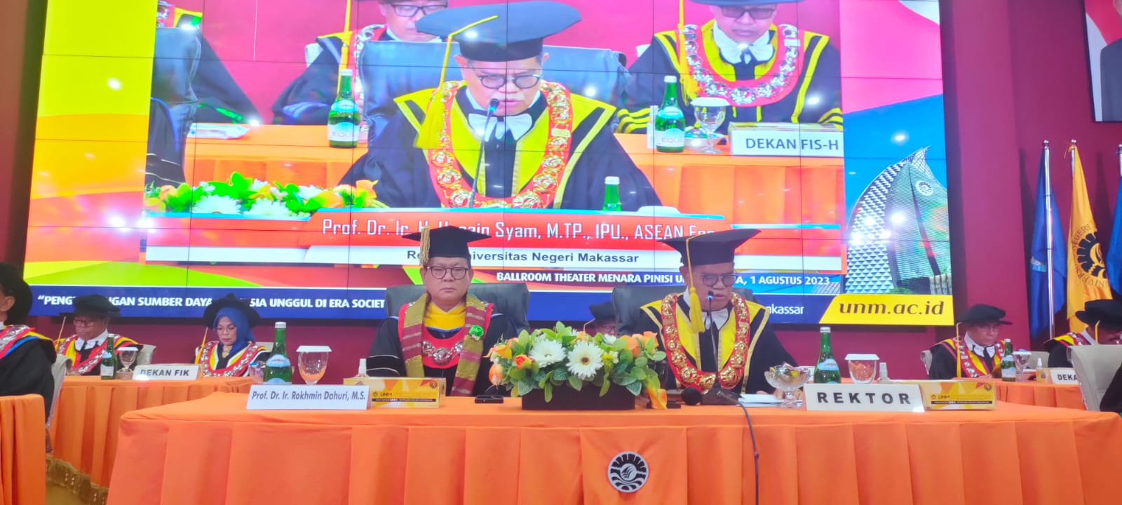 MAKASSAR, KACE — Universitas Negeri Makassar (UNM) memperingati puncak Dies Natalis ke-62 di Ballroom Theater Menara Pinisi, Selasa 1 Agustus 2023.