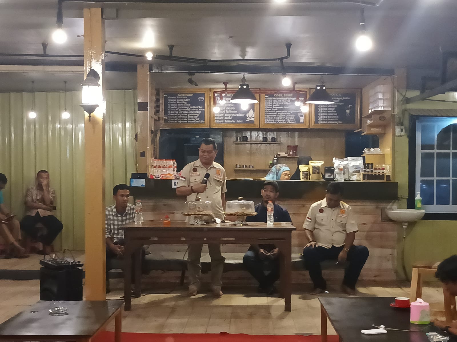 MAJENE.KACE — Ketua Kerukunan Keluarga Mandar Sulawesi Barat (KKMSB) Provinsi Sulsel, Prof Husain Syam (PHS) meladeni kader Himpunan Mahasiswa Islam (HMI) Sulbar di salah satu warung kopi di Majene, Jumat petang, pekan ini.