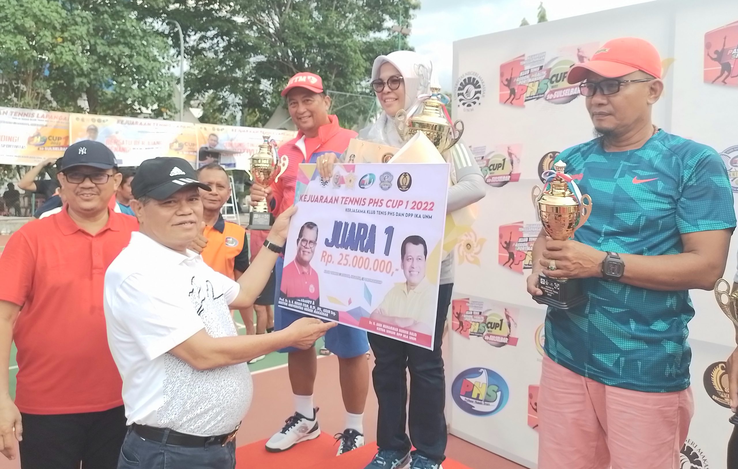 MAKASSSAR, KACE — Tim Tenis UNM PHS berhasil menjadi juara turnamen PHS Cup I di Lapangan Tenis Pasca Sarjana Universitas Negeri Makassar (UNM), Minggu 18 September 2022.